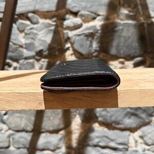 CONDITION: Pre-owned, in good condition. The black leather is overall in very good condition with light wear at edges. Surface marks visible on the inside. General wear on the burgundy leather interior, including scratches and rub marks. Wear and rubbing at the corners and edges. Minor creasing at folds. Hardware shows scratches. Please refer to the pictures and measurements. Feel free to inquire for additional information prior to purchase.