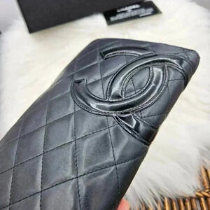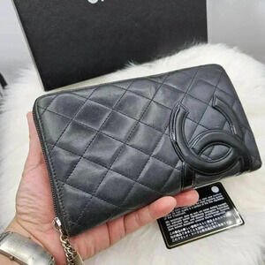 🌸 CHANEL Black Cambon Ligne Zip Around Organizer Wallet Quilted Calfskin Leather 🌸