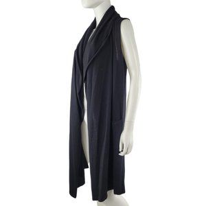 Medium weight cashmere cardigan, sleeveless, two slit pocket, with wide lapel and open front. Made in France. In an excellent condition.