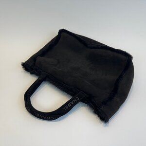 Chanel Black Suede Shearling Fur Hand Bag