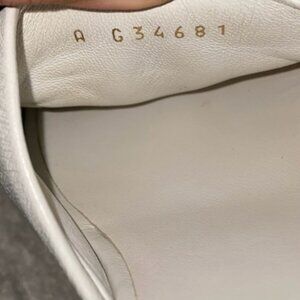 - genuine soft calfskin white leather with black sequin CC logos on each shoe