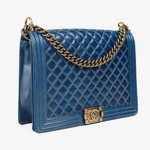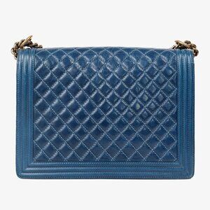 Chanel Blue Quilted Leather Large Boy Shoulder Bag