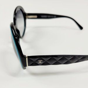 Have slightly oval frame shape with bi colored lens outlined with a turquoise colored frame. The temples are decorated in quilted pattern and carries a signature CC logo in silver tone. Comes with its original dust bag.