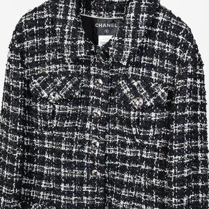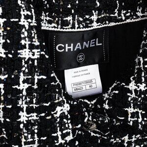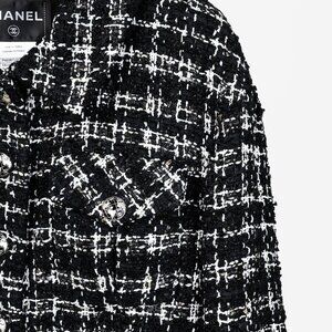 Experience the timeless elegance of Chanel with our Bouclè Fantasy Tweed jacket in black and white. Crafted with intricate weaving from multiple fine materials, and accented with signature Globe CC buttons, this jacket boasts a perfect and distinctive design. Elevate your wardrobe with this essential piece.
