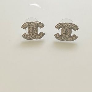 100% Authentic Chanel large CC logo crystal earrings in great condition!