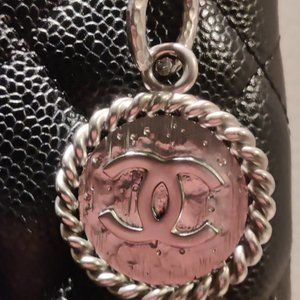 -Hardware color: grey ruthenium metal. Zipper decorated with a medallion signed CC in gray ruthenium metal