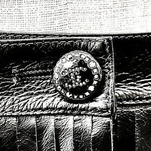 Versatility: The black leather and dynamic fringe make it a show-stopping piece that can be dressed up for cocktail events or paired with a simple knit for an elevated day-to-night look.