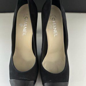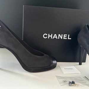 Classic Chanel Suede and Leather Platform Pump. Barely Used