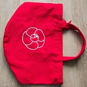 Looking for a unique and stylish tote? This vibrant red No. 1 de CHANEL cotton tote is a preloved gem made from 100% high-quality cotton, its bold red canvas exudes confidence. One side features the iconic "N°1 de CHANEL" logo, while the other showcases a delicate white camellia.