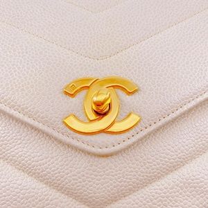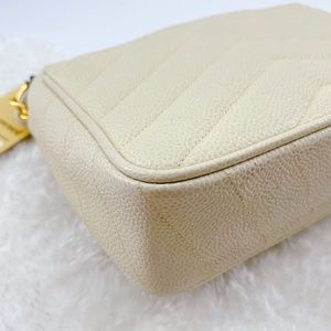 Chanel Cream Vintage Caviar Leather V Stitch Shoulder Bag