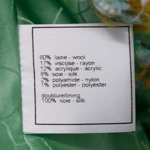 Composition: Main: 60% wool, 17% viscose, 12% acrylic, 8% silk, 2% polyamide-nylon, 1% polyester; Lining: 100% silk