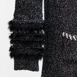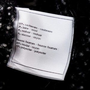 Composition: 95% cashmere, 3% wool, 1% mohair, 1% viscose; Faux fur: 85% modal, 15% polyester