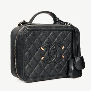 Chanel Filigree Medium Black Caviar Quilted CC Vanity Case