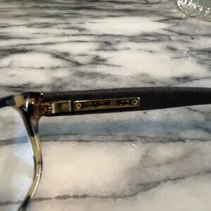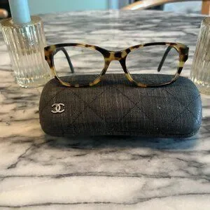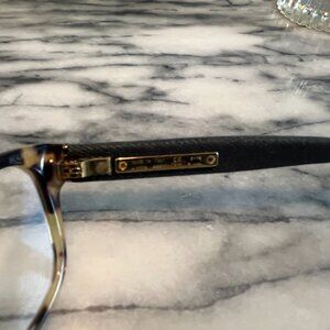 Authentic Chanel eye glasses made in Italy (Chanel is made in China now) Fabric blue jean sides, tortoiseshell frames with gold chanel logo