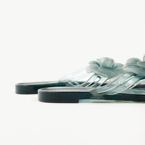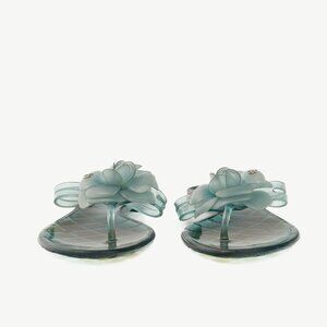 Chanel Green Metallic Jelly Camellia Thong Sandals