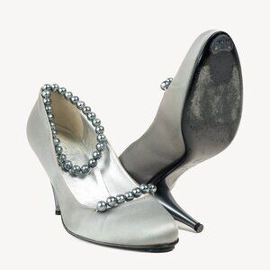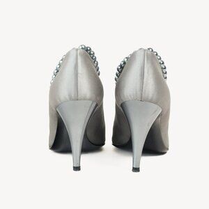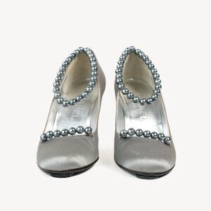 Chanel Grey Pearl Ankle Satin Pumps