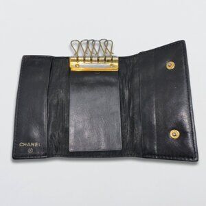 Chanel Holder Wallet 6 key Fob Holder CC Logo Grained Calfskin Leather Black