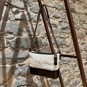Chanel Ivory Black Lambskin Medium Gabrielle Hobo Bag