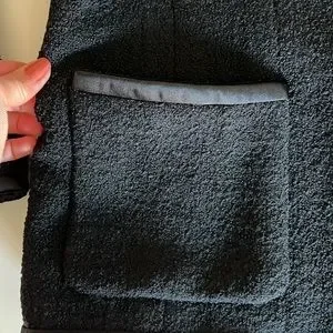Made in France, size 44/ US 12. Measurements are lay flat -please see pics. (I’m a size 4 and this fits me beautifully oversized.) No visible flaws. See pics for fabric composition.