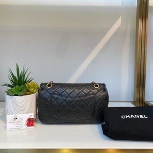 Chanel Lambskin Black Flap Bag with Charm