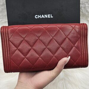 Chanel Lambskin Quilted Boy Flap Wallet Red