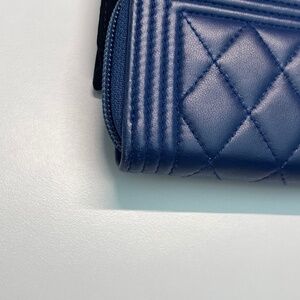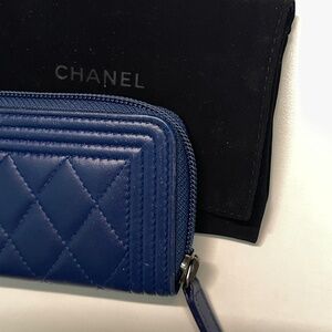 Chanel Lambskin leather Quilted Boy Zip Around Coin Purse Wallet Blue w/dust bag