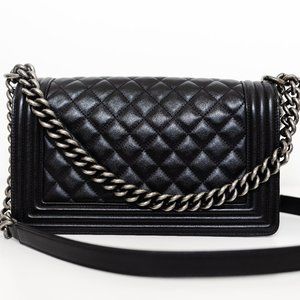 Chanel Quilted Old Medium Le Boy Black Calfskin Ruthenium HW.