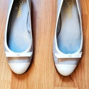 Chanel Leather Ballet flats (Size 40), Used, White and Creamy color