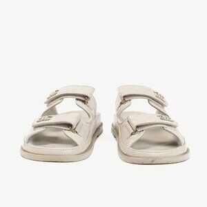 Chanel Light-Grey Lambskin Quilted CC Chain Velcro Dad Sandals