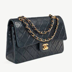 Chanel Navy Lambskin Leather Classic Medium Double Flap Shoulder Bag