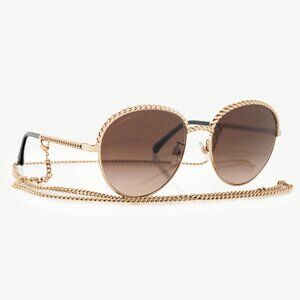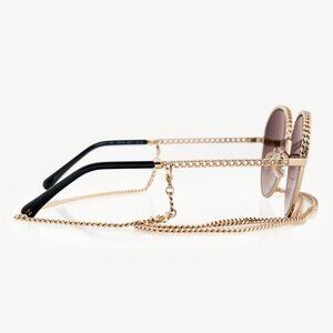 Chanel Pantos Gold-Tone & Black Metal-Chain Sunglasses
