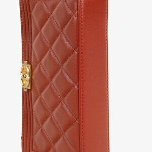 Chanel Red Grained Calfskin GHW Quilted Small Boy Clutch With Chain