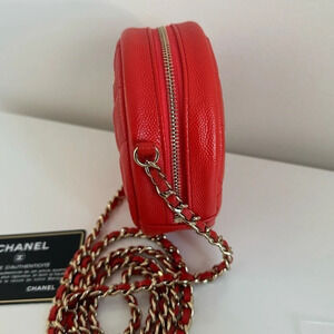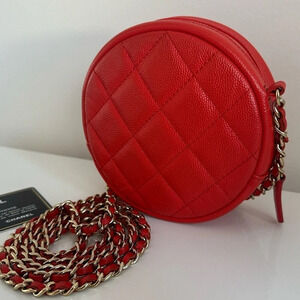 Chanel Round Clutch Mini Bag Chain Quilted Red Caviar Silver Hardware 26 series