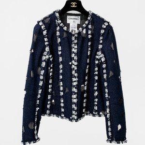 Chanel SS11 Metallic Distressed Hole Tweed Paneled Jacket