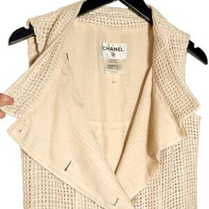 Chanel SS13 Ivory Open Knit Double Breasted Silk Sleeveless Dress