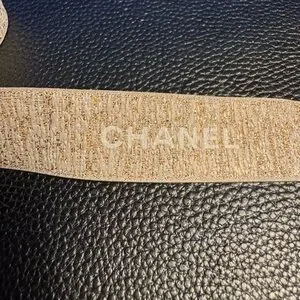 Luxurious Chanel ribbon with a shimmering gold hue. Ideal for elegant projects.