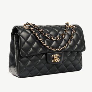 Chanel Small Classic Black Lambskin Quilted Double Flap Bag