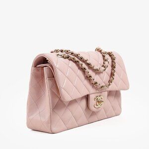 Timeless and classic, Chanel's Matelasse shoulder bag in pink is a sight to behold. Featuring Chanel's signature lambskin leather in a quilted pattern, this bag is sure to turn heads. The front of the bag features a gold twist lock closure inside Chanel's signature CC logo, with the bag featuring a large slip pocket. Lifting the flap reveals pink zip closure pocket on the underside of the flap while also revealing a secondary snap button closure flap. Inside the bag there are two half size slip pockets and one full size slip pocket with a spacious main compartment. To top it off is a gorgeous pink leather strap and gold chain interwoven with each other to allow you to carry this bag in style.