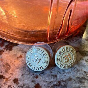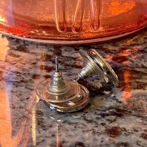Off-white enamel stud earrings. They lay flat on the ear lobe. Great condition. Originally purchased Yorkville Ontario Chanel retailer 2019-03-23. Receipt available.
