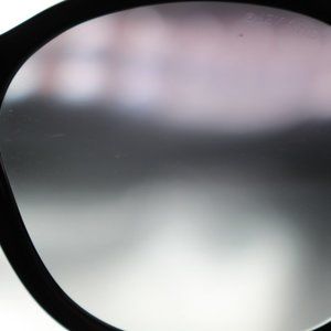 The frame and temples have some light scuffs, and the right lens has a light scuff.