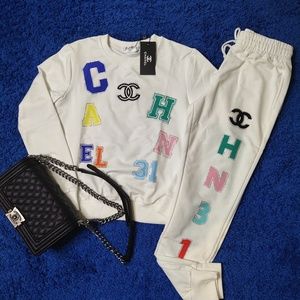 Chanel sweatsuit made of stretchy cotton. The design has sparkly diamond design.