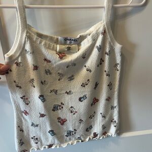 Elevate your wardrobe with this chic Chanel white tank, featuring a playful pattern. Perfect for any occasion.