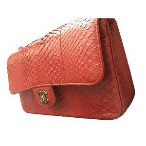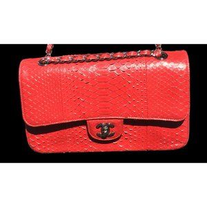 Chanel Womens Red Python Leather Classic Double Flap Jumbo Handbag