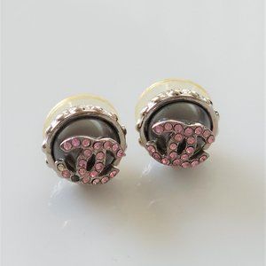 Chanel vintage stud earring. Features CC logo with pink rhinestones (there is 1 missing stone in one of the earring - please see photo).