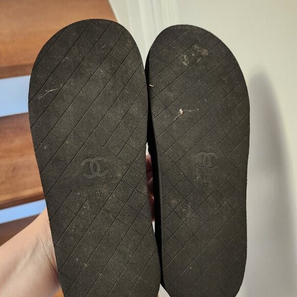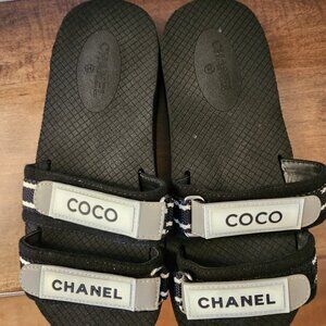Chanel women's quilted coco logo double strap sandals in size 37.