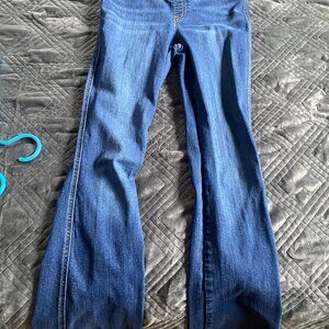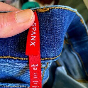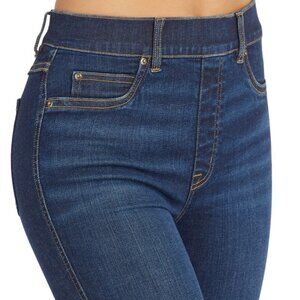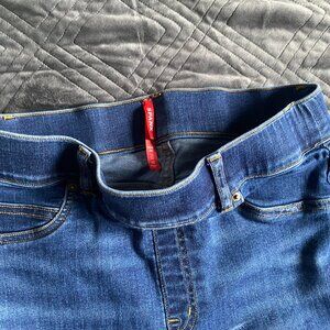 Spanx jeans lift and flatter. These flare jeans in Midnight Shade go with any shade and pull right on. Perfect colour for any season. Barely worn: fits 5"9-5"11. Sadly not as flattering for an already tubular body type!