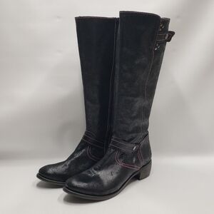 Chanii B Knee High Leather Boots Low Heel Side Zip Size 40
