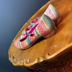 New - no box. Chanii B t-strap rainbow almost flat casual shoe. Bright colourful shoes. Size EU 37.