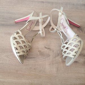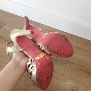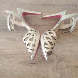 - laser cut outs in a scale pattern on toe area with peeptoe, gives a bit of mermaid vibes