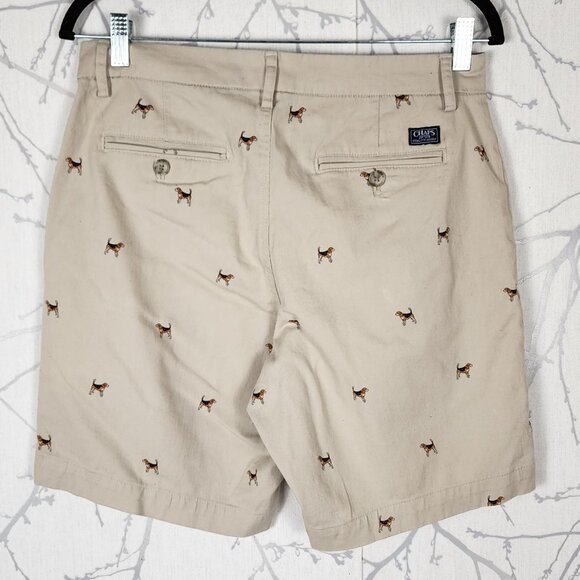 Chaps Beige Cotton Stretch Beagle Dog Print Chino Shorts